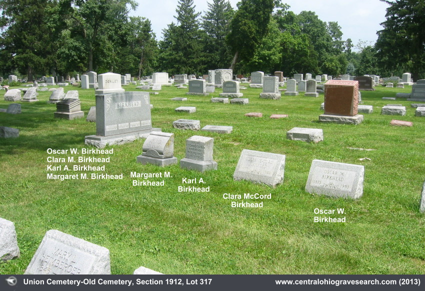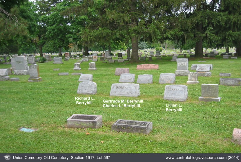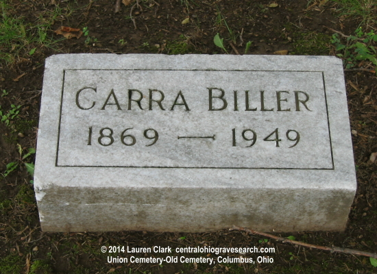 Blocker, Chloe R. | 1854 | * 05 Jun | 1929 | Union Cemetery Association Interment Book 7, page 268, lists aged 74 years, White female, funeral home: Albert T. McCoy in Washington Court House, Ohio, and indicates box containing ashes [no name listed] placed on top of vault. | Sec. 1912 | Lot 149 (Photo) | 1st on South, West Tier | Eastside | Map | ||