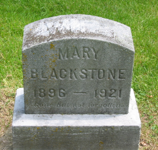 Bly, Julia E. | * 15 Feb | 1919 | Union Cemetery Association Interment Book 3, page 349, lists aged 74 years, funeral home: N. S. Cook. | Sec. 1917 | Lot 191 (Photo) | 2nd from South | Eastside | Map | |||