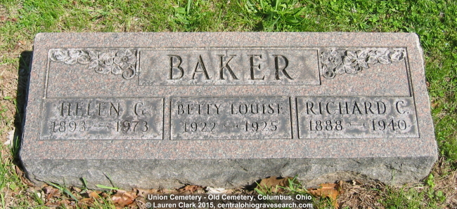 Backus, Fontella | 1918 | * 02 Jul | 1920 | Union Cemetery Association Interment Book 4, page 127, lists aged 2 years, funeral home: Hilltop Co. [Interment Book 4 lists name Wildo F. Backus, stone is engraved Fontella Backus.] | Sec. 1917 | Lot 158 (Photo) | 2nd from South, East Tier | Eastside | Map | ||