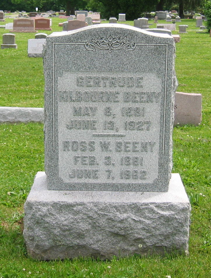 Blue, Nelle P. | 20 Sep | 1888 | 12 Nov | 1984 | Burials on the Web lists aged 96 years, born in New Albany, Ohio, daughter of Henry Wheeler & Sarah Robinson, date of interment 15 Nov 1984 | Sec. 60 | Lot 202 | Eastside | Map | ||