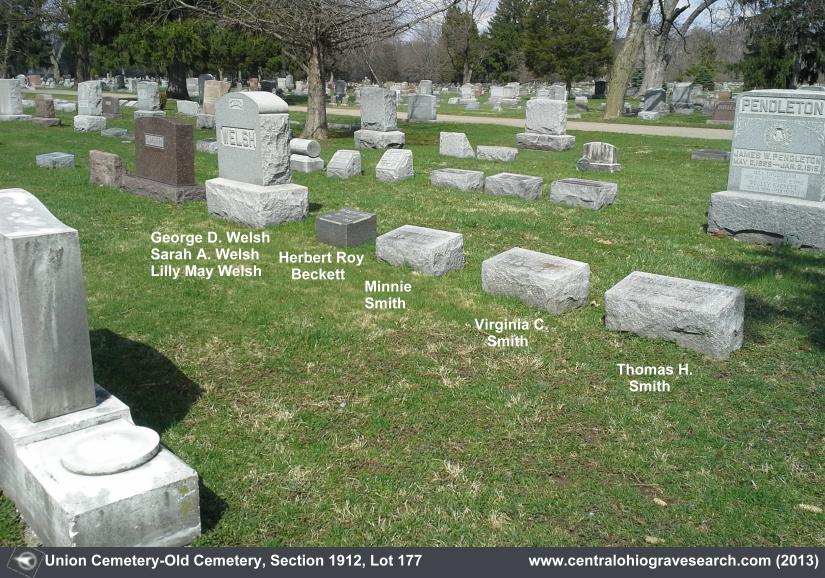 Backenridge, Elizabeth | * 05 Jul | 1913 | Union Cemetery Association Interment Book 2, page 142, lists aged 6 months, funeral home: White & Son | Sec. Old | Lot 179 (Photo) | 1st on West, South Tier | Eastside | Map | |||