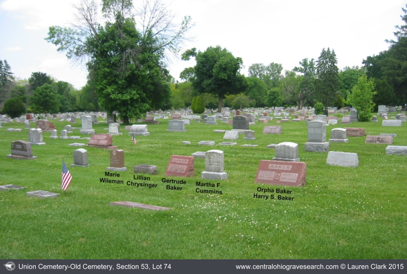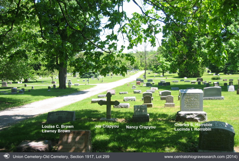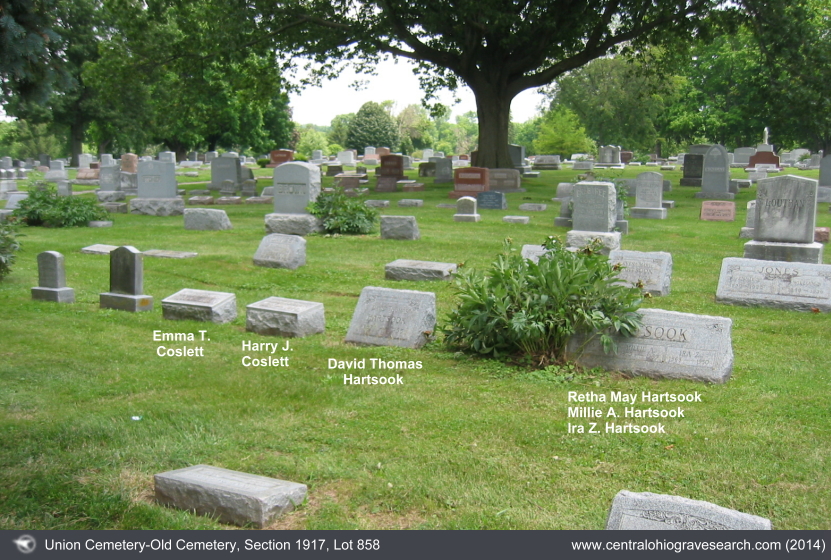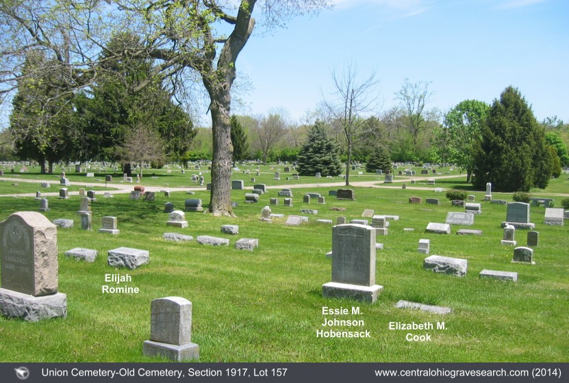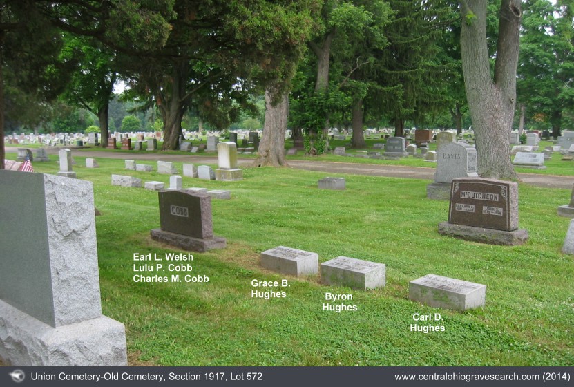 Cobb, Lulu P. | 09 Jun | 1884 | 22 Apr | 1973 | There are no dates on the gravestone at the 2014 reading. Burials on the Web lists aged 89 years, born in Franklin County, Ohio, daughter of John Harris & Elizabeth Schleritt | Sec. 1917 | Lot 572 (Photo) | Eastside | Map | ||
