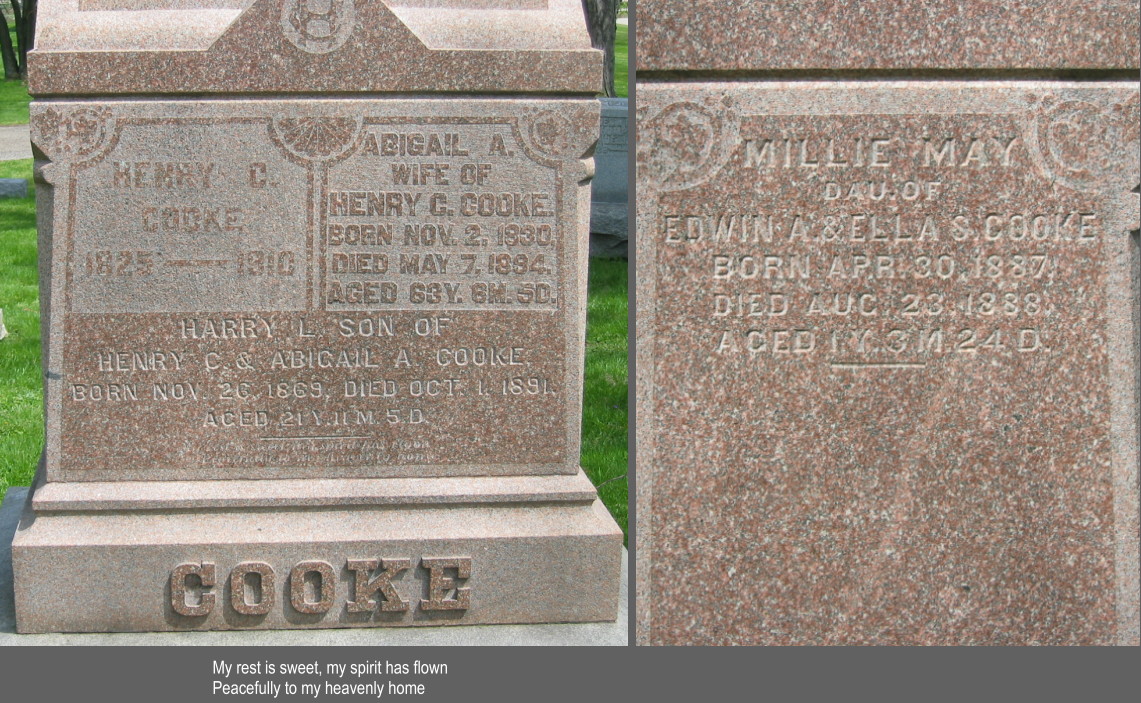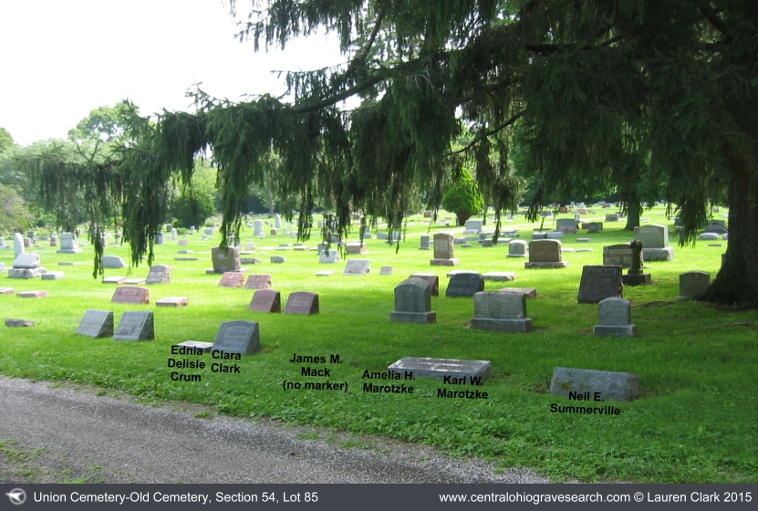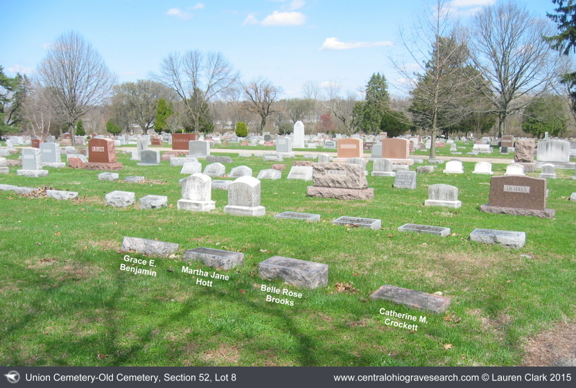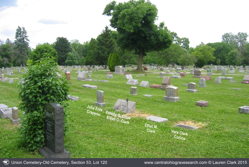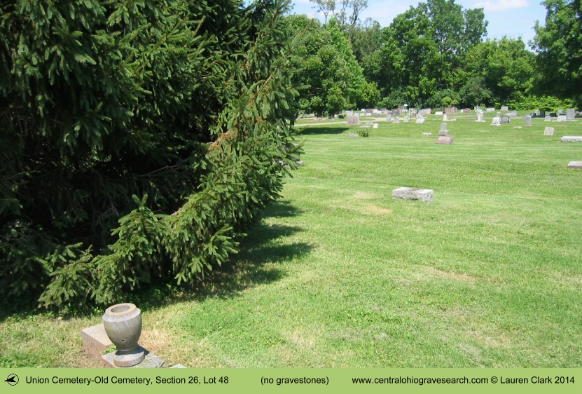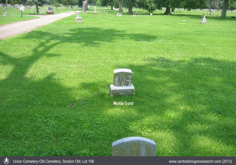 Curry, Sarah E. | 1849 | * 22 Dec | 1926 | Union Cemetery Association Interment Book 6, page 284, lists aged 77 years, White female, funeral home: Edward E. Fisher Co. | Sec. 53 | Lot 106 (Photo) | 1st from North | Eastside | Map | ||