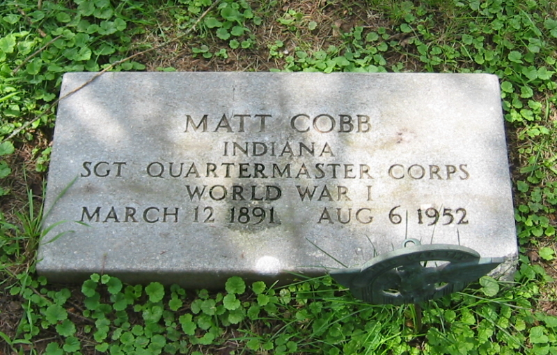 Cobb, Matt | 12 Mar | 1891 | 06 Aug | 1952 | Military marker: MATT COBB, INDIANA, SGT QUARTERMASTER CORPS, WORLD WAR I, MARCH 12 1891 - AUG 6 1952. World War I veteran flag holder. Interment card lists aged 61 years, last residence 75 Cleveland Ave., date of interment 09 Aug 1952 | Sec. 29 | Lot 098 | Eastside | Map | ||