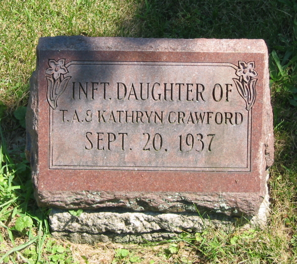 Cutright, Infant Female | * 12 May | 1924 | Union Cemetery Association Interment Book 5, page 290, lists stillborn, White female, funeral home: Edward E. Fisher Co. | Sec. 1917 | Lot 169 (Photo) | 5th from South, East Tier | Eastside | Map | |||
