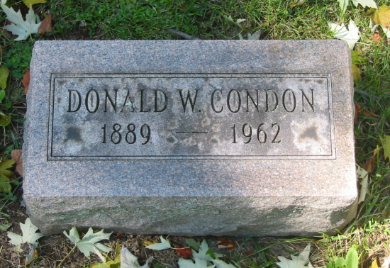 Cushing, Henry H. "Harry" | 1886 | * 22 Jul | 1924 | Union Cemetery Association Interment Book 5, page 326, lists aged 37 years, White male, funeral home: Egan Und. Co. [Interment Book lists first name Harry, stone is engraved Henry.] | Sec. 1917 | Lot 908 (Photo) | 5th from South | Eastside | Map | ||