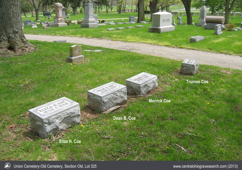 Cochran, Charles Lewis | * 21 Sep | 1936 | Union Cemetery Association Interment Order lists White male, aged 71 years, son of Jeremiah Cochran & Adelia Booth, husband of Sarah Cochran, last residence 1283 Fairview Ave., Grandview, Ohio, funeral home: Shaw-Davis Co. | Sec. 64 | Lot 015 | 4th from North, East Tier | Eastside | Map | |||