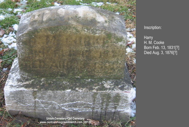 Cobbs, Infant | * 21 Jan | 1915 | Union Cemetery Association Interment Book 3, page 11, lists stillborn, funeral home: Adams. | Sec. 1914 | Lot 014 (Photo) | 5th from West, 2nd Tier from South | Eastside | Map | |||
