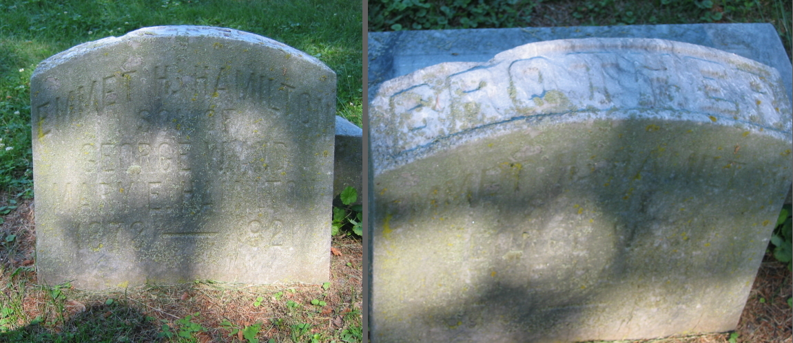 Hess, William W. | 1874 | 1875 | There is no information regarding this individual in Union Cemetery Association records. Records begin after the Union Cemetery Association was formed in 1879. Between 1879-1905, records for individual burials are incomplete. | Sec. Old | Lot 049 (Photo) | Eastside | Map | ||||