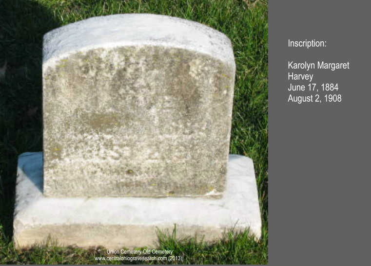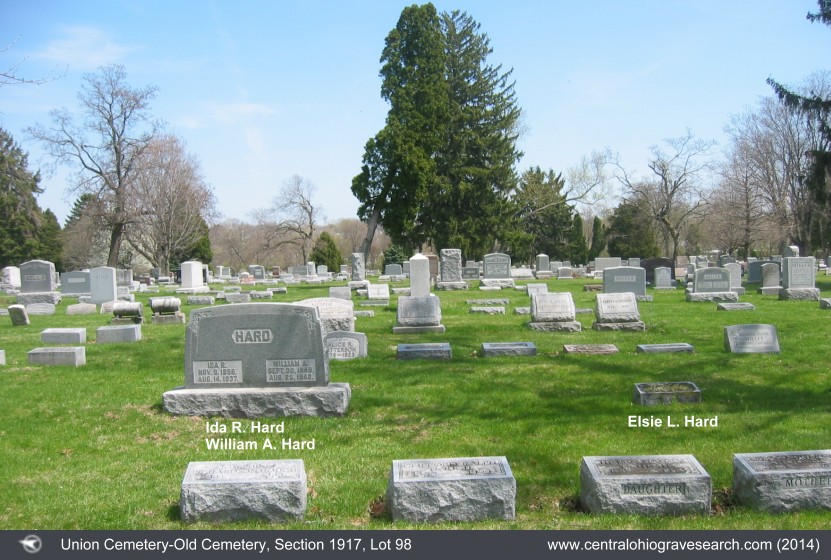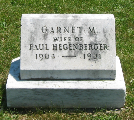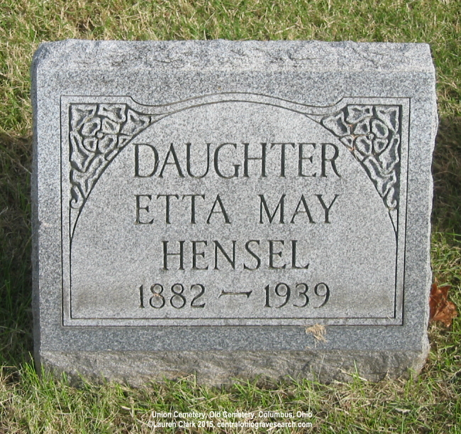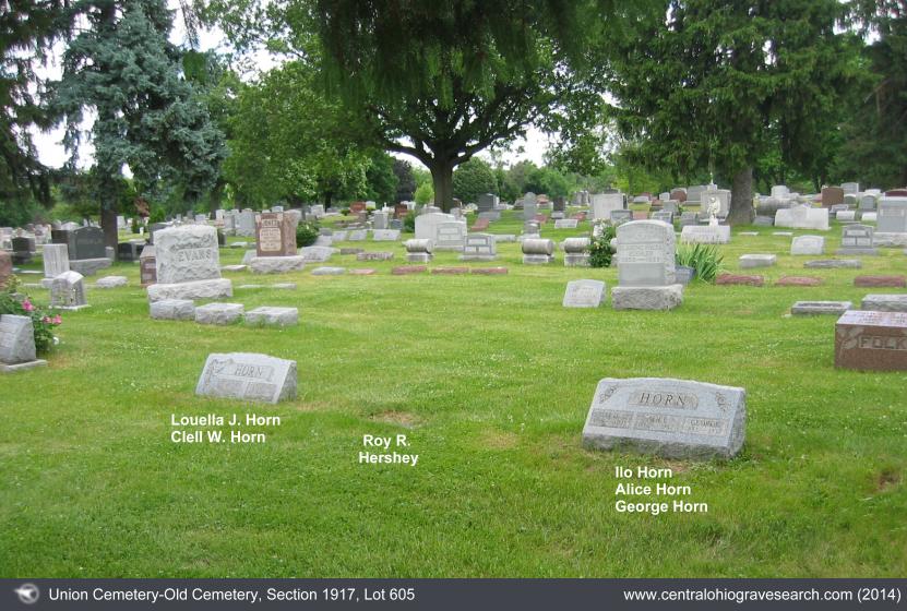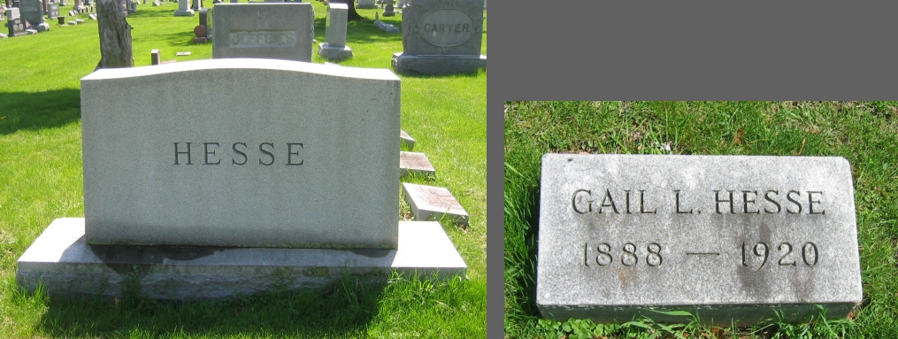 Hesse, Gail L. | 1888 | * 14 Apr | 1920 | Union Cemetery Association Interment Book 4, page 102, lists aged 32 years, funeral home: Schoedinger. | Sec. 1917 | Lot 133 (Photo) | 1st on South | Eastside | Map | ||