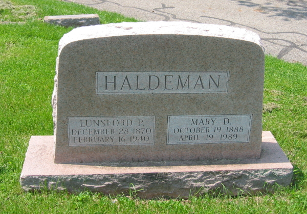 Haala, Mahalia Jane | 1868 | * 12 Jan | 1939 | Gravestone contains the engraving: USWV and Aux. 18. Union Cemetery Association Interment Order lists aged 70 years, White female, daughter of William Kimberland & Harriett Watkins, wife of John Haala, last residence 1002 Leona Ave., funeral home: O. L. Lindenbolt. | Sec. 29 | Lot 004 | 1st from North | Eastside | Map | ||