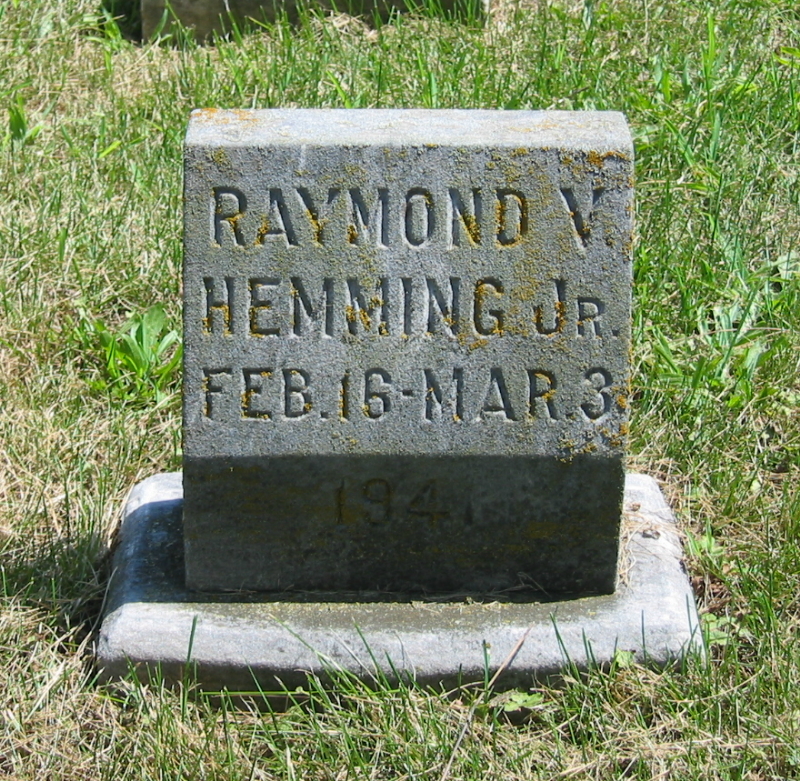 Hetrick, William | * 14 Sep | 1929 | Union Cemetery Association Interment Book 7, page 302, lists aged 2 hours, White male, funeral home: Shaw Davis Co. | Sec. 54 | Lot 016 (Photo) | 9th from North, Center Tier | Eastside | Map | |||