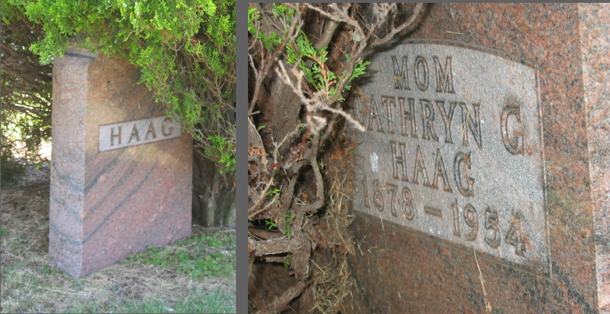 Haag, Kate C. | 1861 | * 15 Jul | 1940 | Interment card lists aged 80 years, last residence 158 Chase Ave. (Chaseland) | Sec. 52 | Lot 138 (Photo) | Eastside | Map | |||