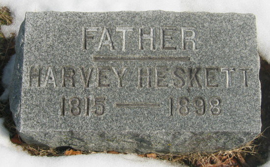 Hess, Philemon | 01 Mar | 1829 | 31 Jan | 1908 | Union Cemetery Association Interment Book 1, page 42, lists aged 78 years, funeral home: Scheodinger [Schoedinger], and indicates on Hess Lot. There is no Lot number listed in the Interment Book entry. Burials on the Web lists son of Daniel Hess & Sarah Gordon, husband of Mary Foster Hess. [Burials on the Web lists date of birth 10 Mar 1829, stone is engraved 01 Mar 1829] | Sec. Old | Lot 016 (Photo) | Eastside | Map | ||