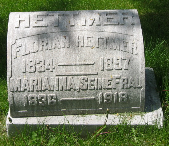 Hettmer, Mariana | 1836 | * 17 Apr | 1918 | Gravestone indicates wife of Florian Hettmer. No information regarding an individual with this exact name was found in Union Cemetery Association records although an entry in Union Cemetery Association Interment Book 3, page 251, lists "Margaret Hettmer," aged 82 years, funeral home: Schoedinger Co. | Sec. Old | Lot 464 (Photo) | Eastside | Map | |||