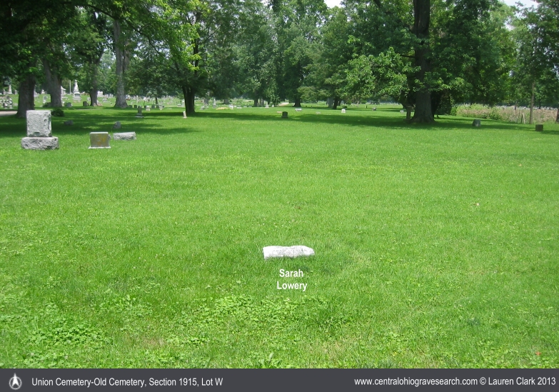 | Lyons, Mary | 1840 | * 20 Jul | 1920 | Union Cemetery Association Interment Book 4, page 133, lists aged 80 years, funeral home: N. S. Cook. | Sec. 1917 | Lot 428 (Photo) | 1st on South | Eastside | Map | ||