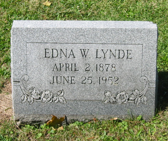 | Lynde, Edna Mae | 02 Apr | 1878 | 25 Jun | 1952 | Interment card lists aged 74 years, last residence 136 Clark St., Gahanna, Ohio | Sec. 1915 | Lot 192 (Photo) | Eastside | Map | ||