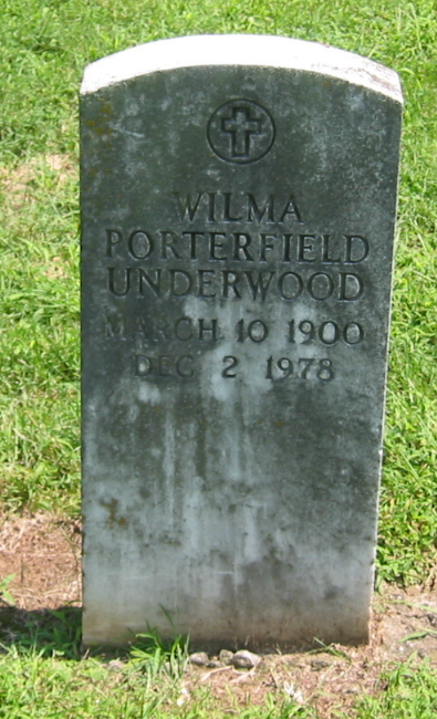 | Underwood, Wilma H. Porterfield | 10 Mar | 1900 | 02 Dec | 1978 | Interment card lists aged 78 years. [Interment card lists name Wilma H. Underwood, stone is engraved Wilma Porterfield Underwood.] | Sec. 32 | Lot 070 | Eastside | Map | ||