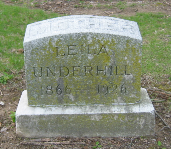 | Underhill, Leila | 1866 | * 18 Oct | 1926 | Union Cemetery Association Interment Book 6, page 252, lists aged 60 years, White female, funeral home: H. A. Pletcher Co. [Interment Book lists name Emily D. Underhill, stone is engraved Leila Underhill.] Information from a researcher in Mar 2019 indicates the following: Emily Delilah Richards Underhill "Leila", wife of George E. Underhill. | Sec. 52 | Lot 189 (Photo) | 2nd from South | Eastside | Map | ||