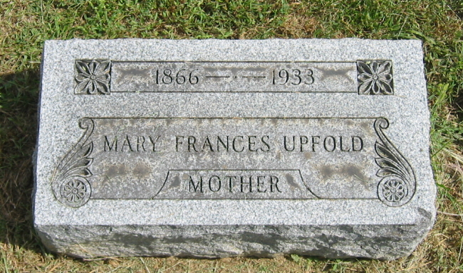 | Updike, F. Gertrude | 1885 | * 10 May | 1917 | Union Cemetery Association Interment Book 3, page 170, lists aged 31 years, funeral home: Myers & Owens. [Interment Book 3 lists name Frances G. Dilley, stone is engraved F. Gertrude Updike. Interment Book 3 lists location in Lot 1917 which appears to be an error as Union Cemetery Association Single Space Book 3, page 21 lists Section 1912 and her gravestone is in Section 1912.] | Sec. 1912 | Lot 263 (Photo) | Eastside | Map | |||