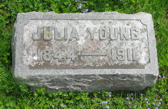 | Young, Viola J. | 1869 | * 23 Feb | 1928 | Union Cemetery Association Interment Book 7, page 79, lists aged 58 years, White female, funeral home: Glenn L. Myers. | Sec. 54 | Lot 060 (Photo) | 3rd from South | Eastside | Map | ||
